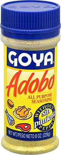 Voeg een heerlijke smaak toe aan vlees en kip met de Goya Adobo zonder peper. Het voegt een speciaal tintje toe aan elk gerecht. Het is de perfecte mix van latijnse kruiden, waardoor het een ideaal ingredient is voor je groenten, rundvlees, kip of zeevruchten.